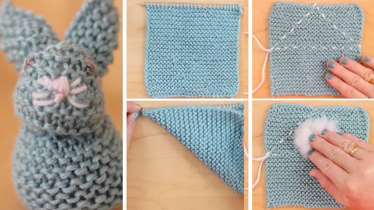 I often get asked, “Can we knit a bunny from a square in other stitch patterns?” Yes, absolutely!